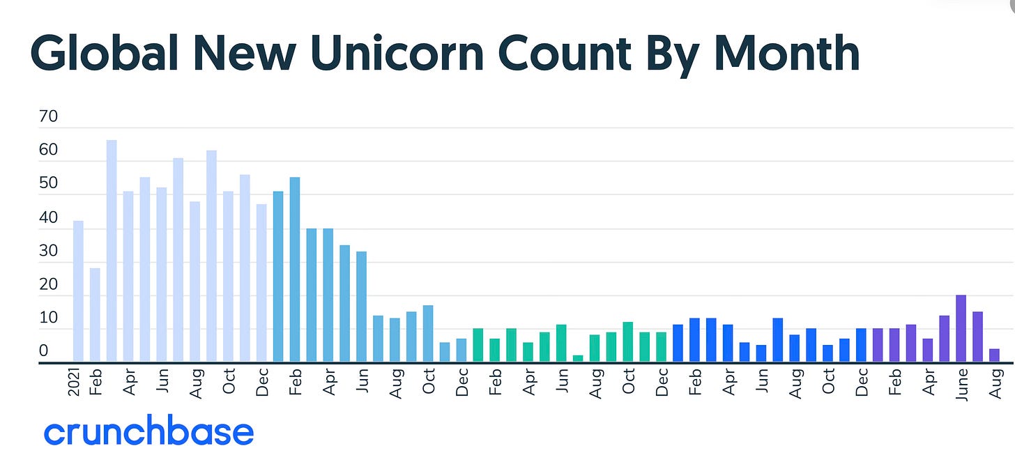 Still, only four companies joined the unicorn board last month — the lowest count so far this year, mirroring the slower pace of venture funding in August.