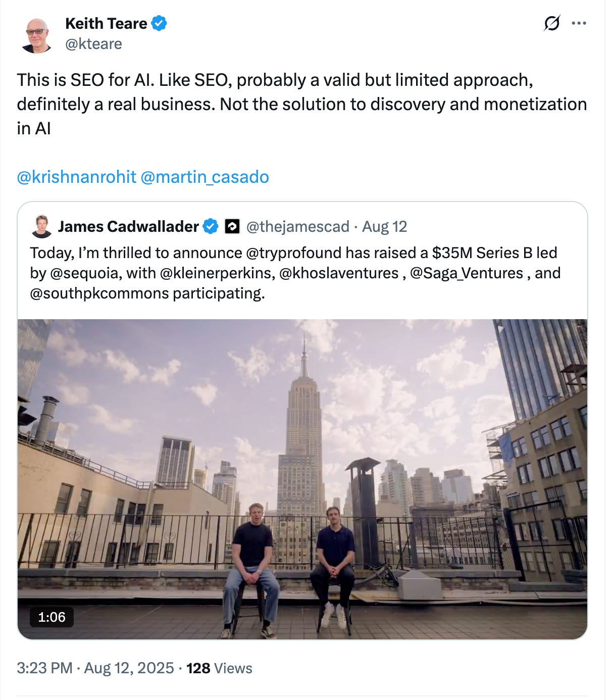 The bigger point is AI systems disintermediate the user & publisher relationship. Users prefer aggregated AI answers over clicking through websites to find their answers.