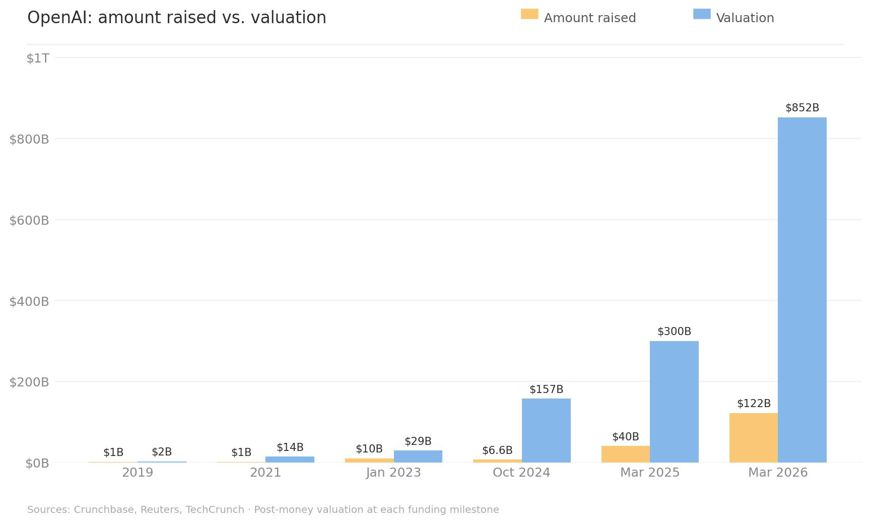 Om’s latest installment in his running OpenAI skepticism series. The $122 billion round closed — up from $110 billion in February — at an $852 billion post-money valuation. Anchors: Amazon ($50B tied to an 8-year AWS contract), Nvidia (compute, not cash), SoftBank. The late additions — a16z, Sequoia, BlackRock, Blackstone, Fidelity, Temasek — are what Om calls “the FOMO gang,” brand-name investors showing up to secure their spot for the IPO pop. The $4.7 billion credit line from JPMorgan, Goldman, Citi, Morgan Stanley, and Wells Fargo isn’t a lending facility — it’s an underwriter audition. Three of those banks then channeled $3 billion in individual investor money into the round through their wealth management clients. Bloomberg and Reuters are now calling the Amazon/Nvidia structure “circular financing.” The newest move: OpenAI shares will be included in ARK Invest ETFs before the company goes public — creating retail demand and distributing the narrative to millions of people before a filing even happens. Om notes ARK’s flagship fund is still down ~43% from its 2021 peak five years later. CFO Sarah Friar, not Sam Altman, is doing all the press. The enterprise pivot — killing Sora, building the superapp — is framed as a race to go public before the music stops.