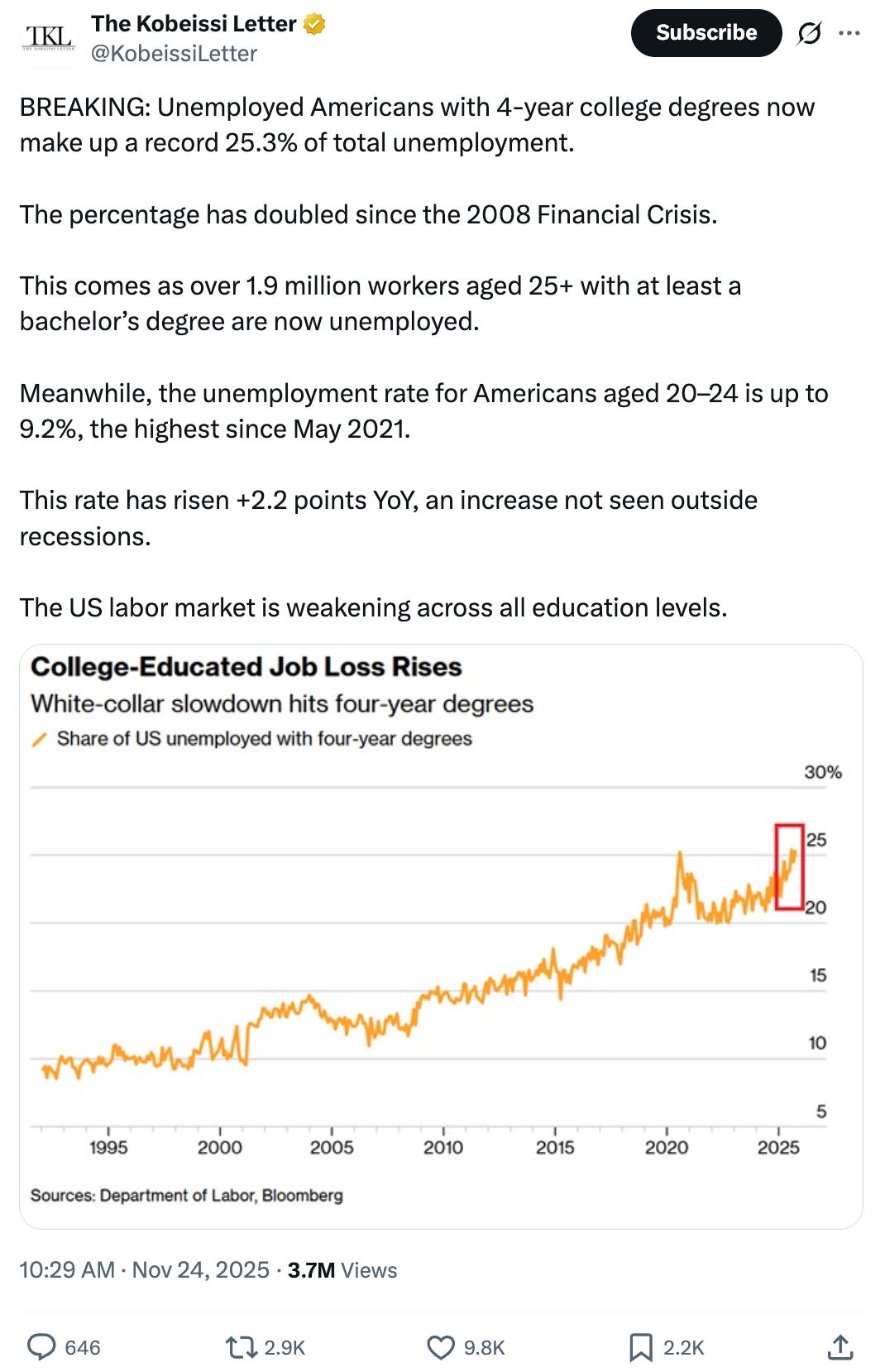 While this concentration of resources may be a rational response, it also concentrates risk. By linking retirement savings and our collective economic stability to a “handful of highly correlated, high-stakes trades,” we are betting our collective future that the winners of this curve will be benevolent—and that the system can survive the compression required to crown them. Of course my day job at SignalRank is building a highly diversified derisked index of private assets. Maybe there is a way to have your cake and eat it :-)