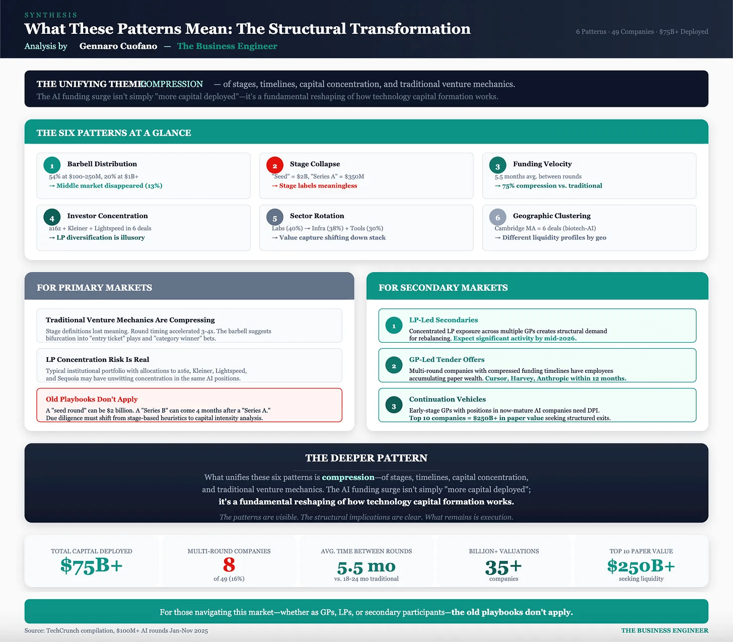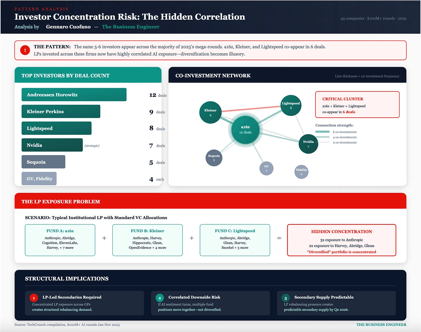 This industrial logic justifies the “1,000x gap in check size” and the emergence of the very “$2 billion ‘seed’ rounds” that signal this new era. Capital is being forced into a “barbell distribution,” clustering around a few massive, category-defining bets. This is why elite firms like Sequoia, Nvidia, and a16z are repeatedly co-investing in the same mega-rounds. They are not diversifying; they are building a “de facto AI index.” The cost of missing the single winning AI platform is existential, so investors are compelled to consolidate their bets into a “highly unified, synchronized capital stack.” For them, spreading capital too thin in a “Winner Takes Most” market is a guarantee of failure.