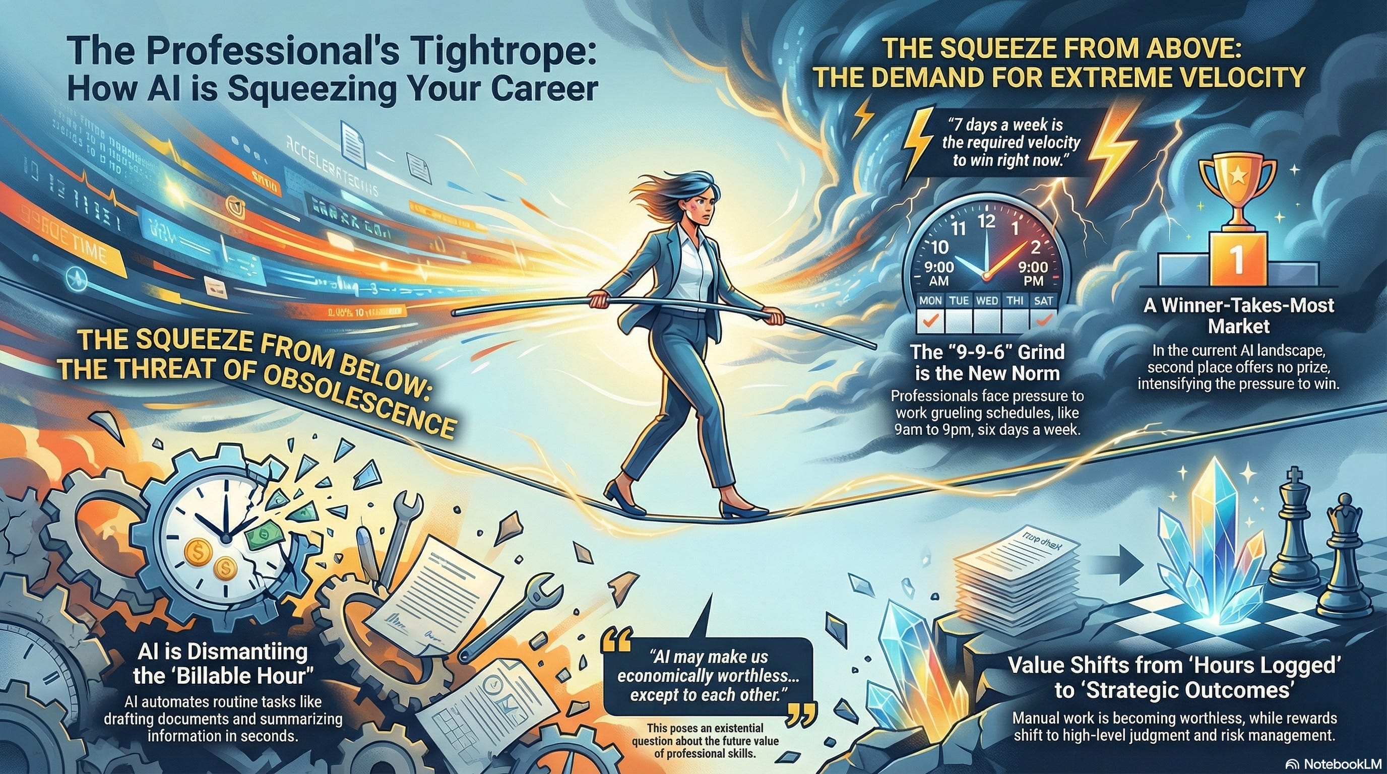 This culture isn’t arbitrary; it’s a direct consequence of the market dynamics. In a race where second place offers no consolidation prize, professionals are squeezed between the demand for grueling velocity and the looming threat of their skills becoming economically obsolete. The career ladder is compressing into a high-stakes tightrope.